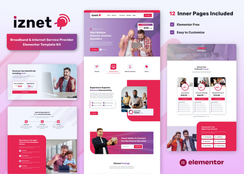 Iznet – Broadband Internet Service Provider Elementor Template Kit