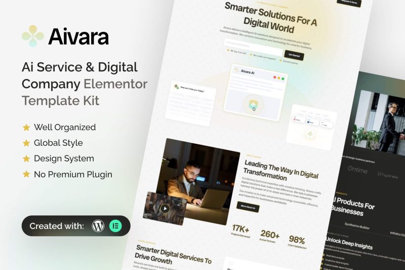 Aivara – Ai Service & Digital Company Elementor Template Kit