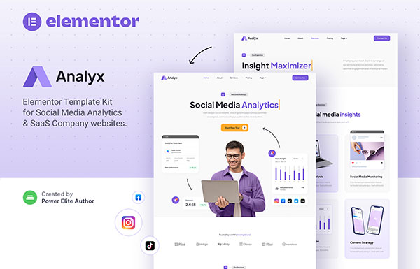 Analyx – Social Media Analytics & SaaS Company Elementor Template Kit