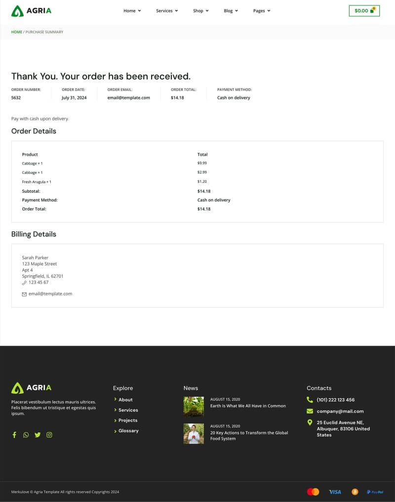 Purchase summary
