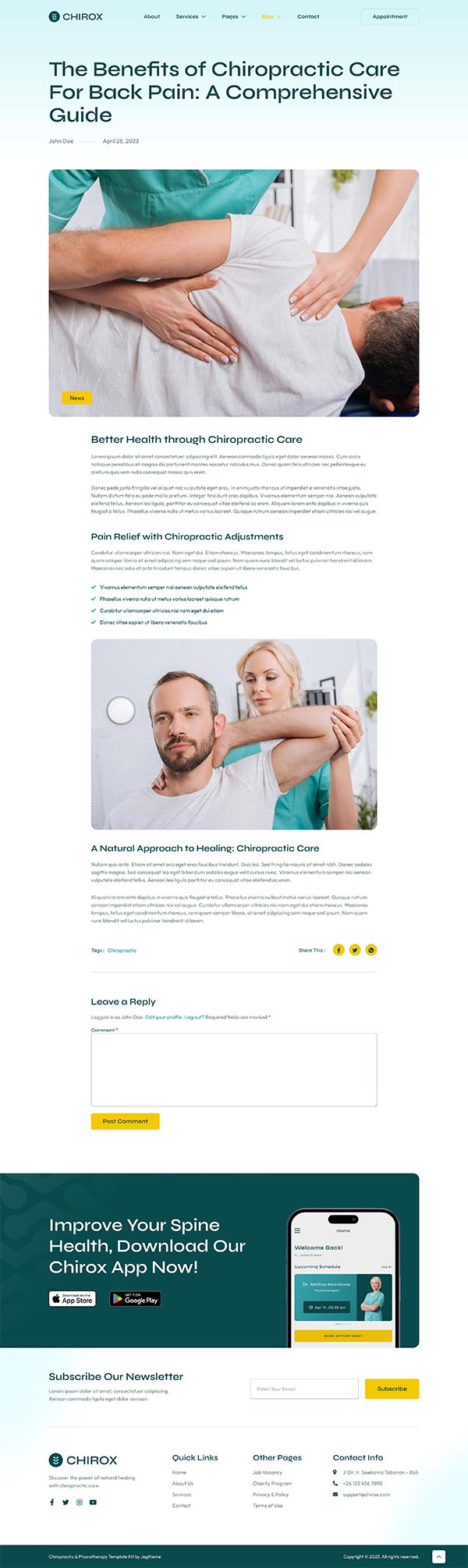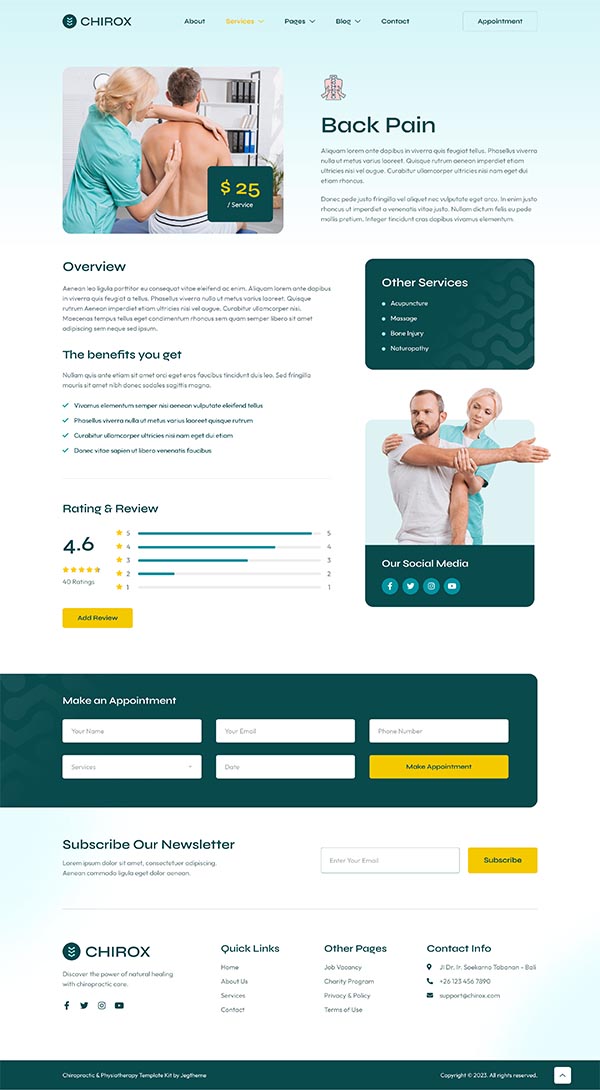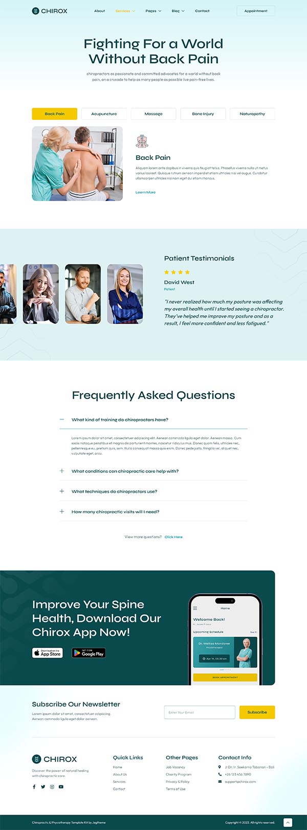 Chirox – Chiropractic & Physiotherapy Elementor Template Kit
