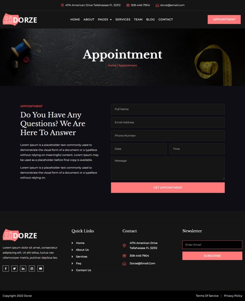 Dorze - Appointment Page