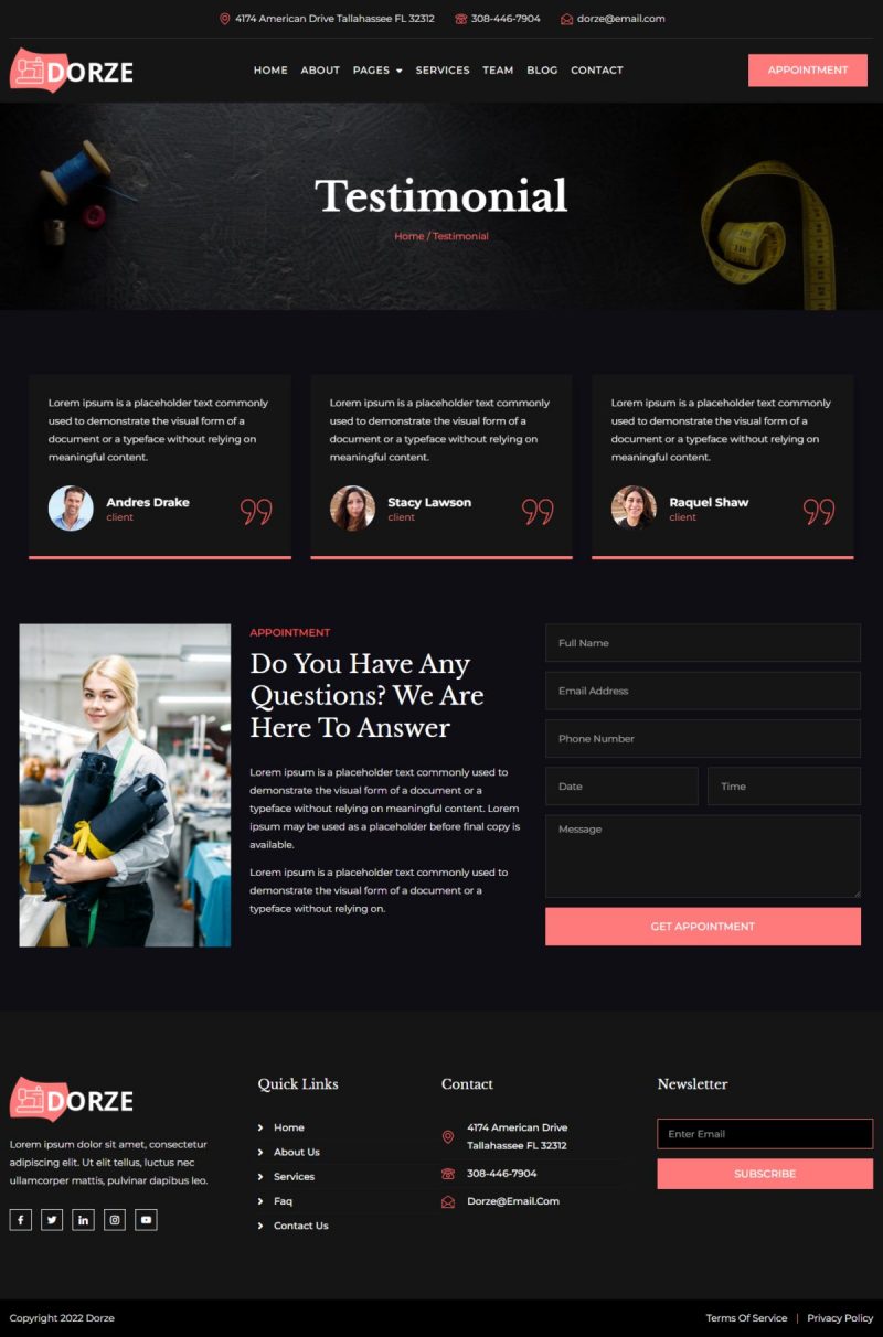 Dorze - Testimonial Page