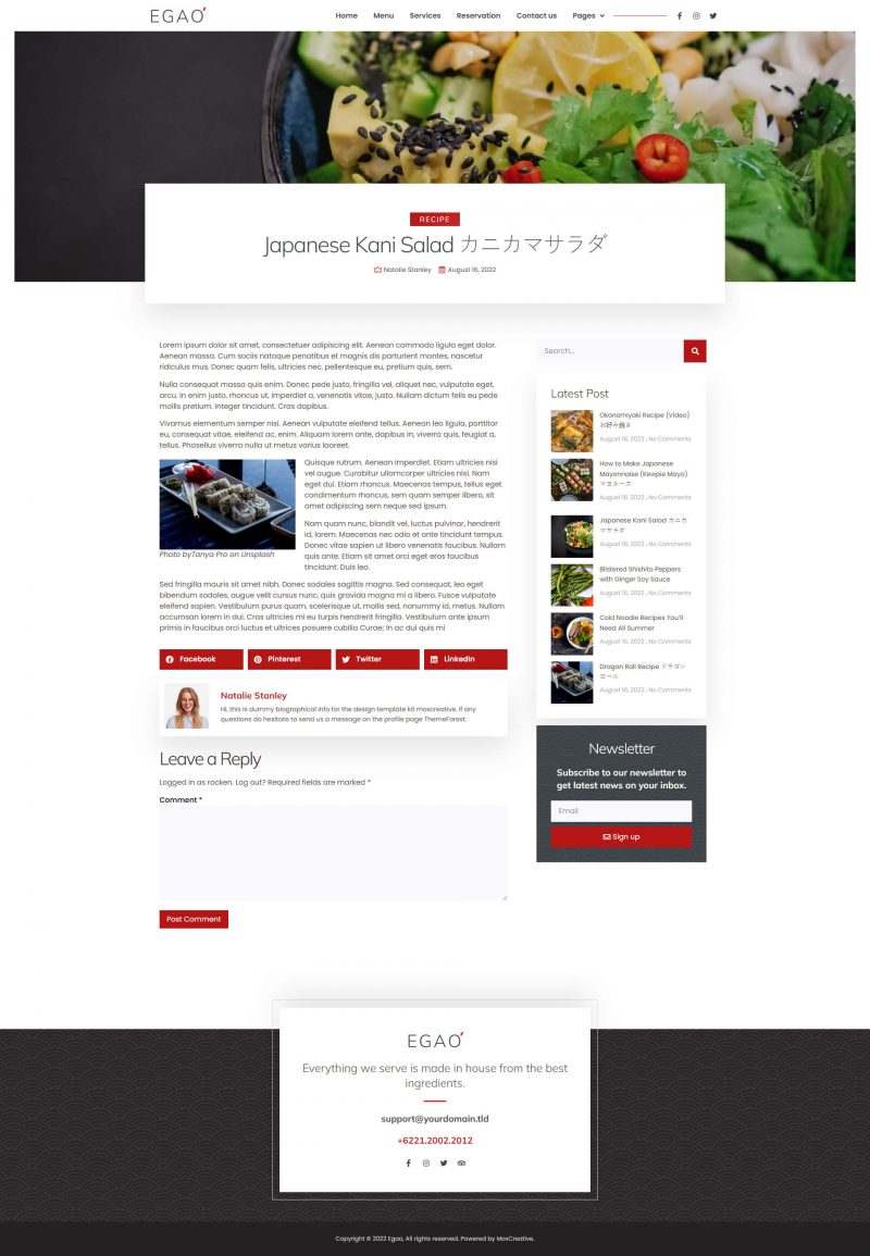 Egao – Template kit for japanese restaurant