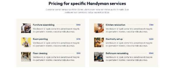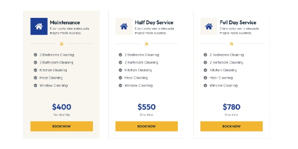 Block Pricing Menu