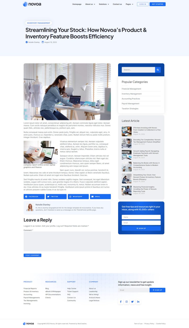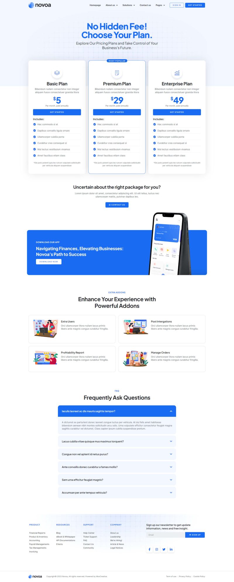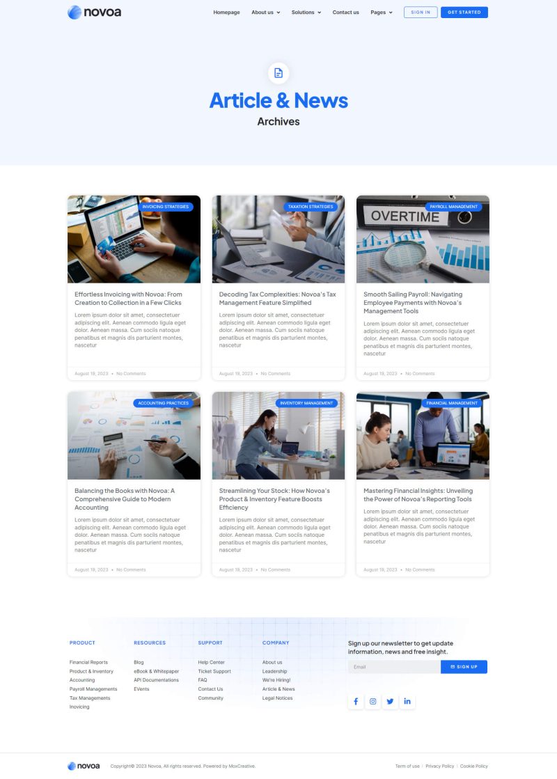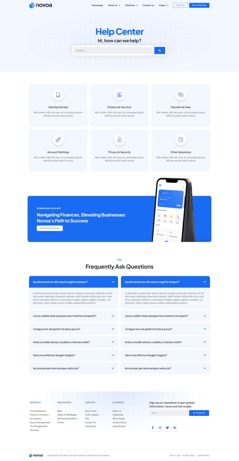 Novoa – Template kit for SAAS Finance software
