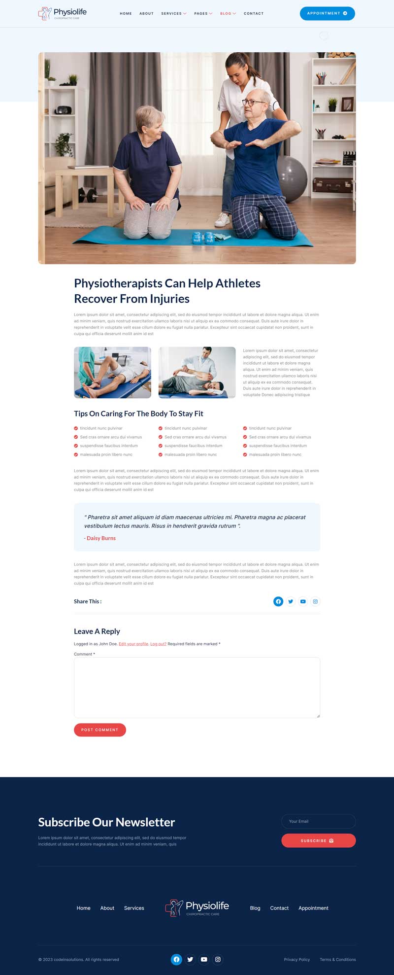 Physiolife – Chiropractic & Physiotherapy Elementor Template Kit