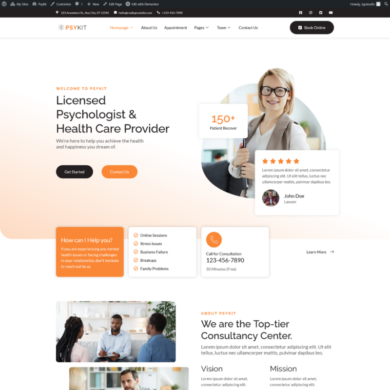 Psykit – Psychology & Counseling Elementor Template Kit