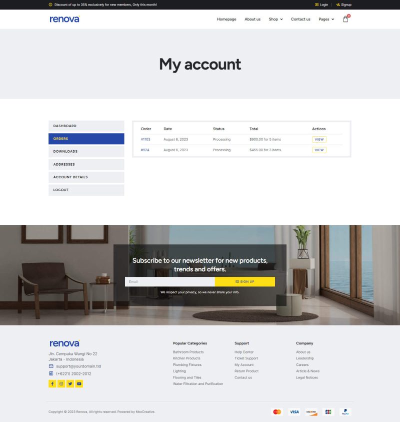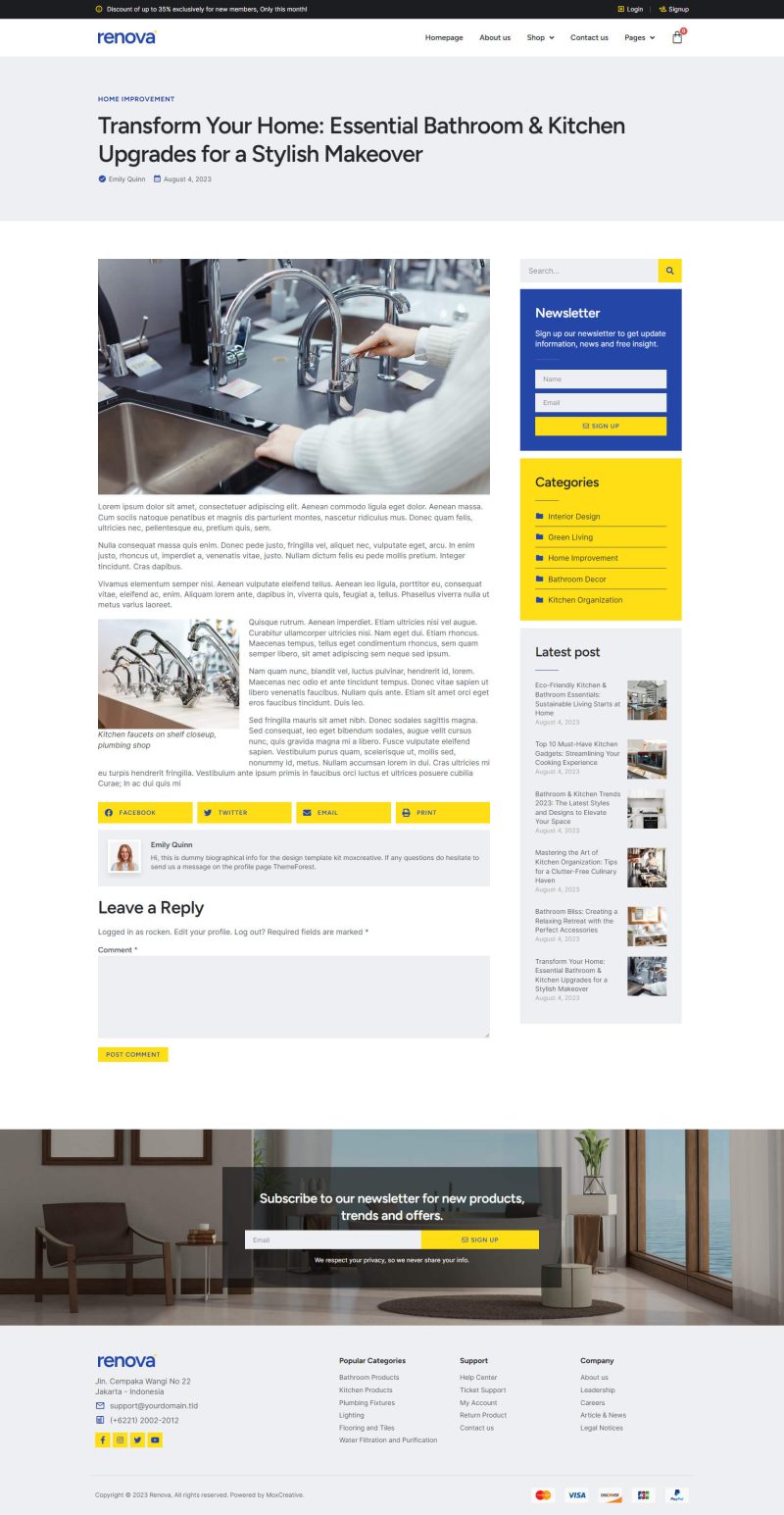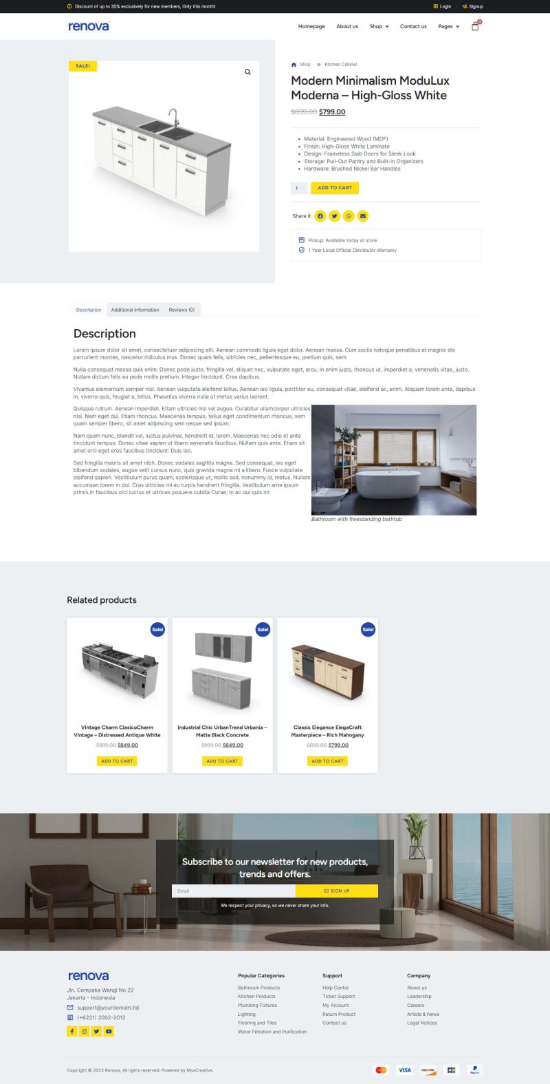 Renova – Template kit for Kitchen & Bathroom Store