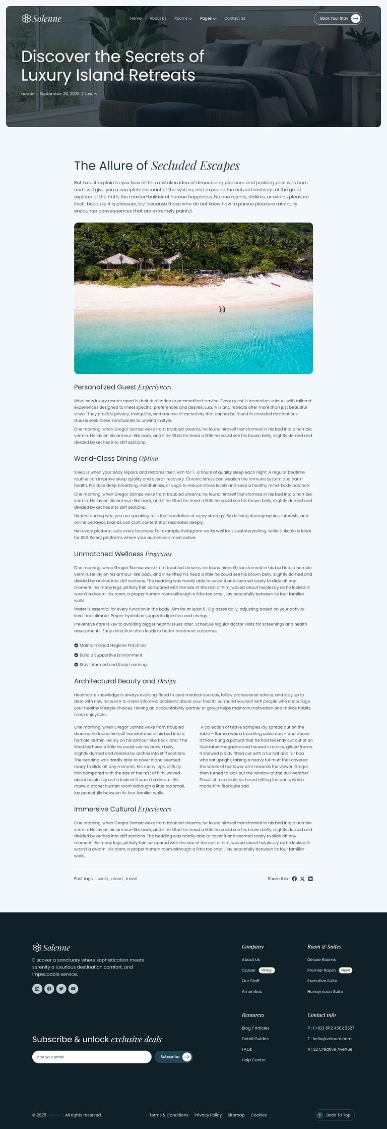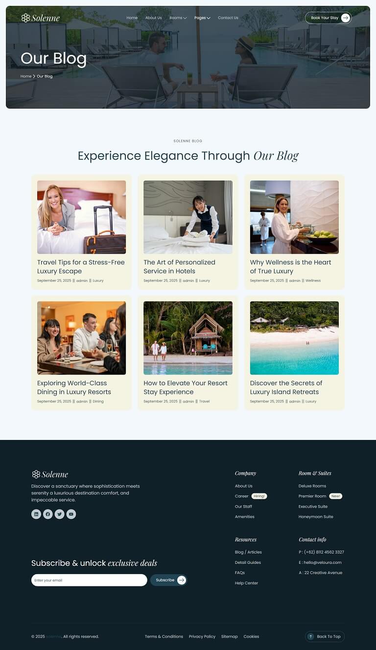 Solenne – Luxury Hotel & Resort Elementor Template Kit