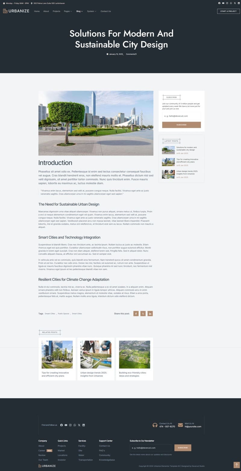Urbanize Urban Planning Designer Elementor Template Kit
