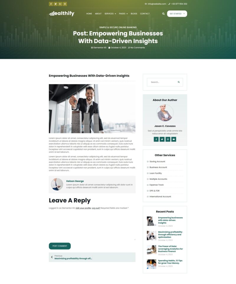 Wealthify – Online Banking & Finance Elementor Template Kit