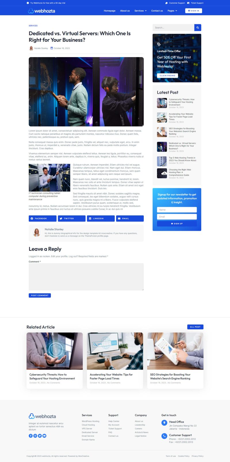 WebHozta - Single post