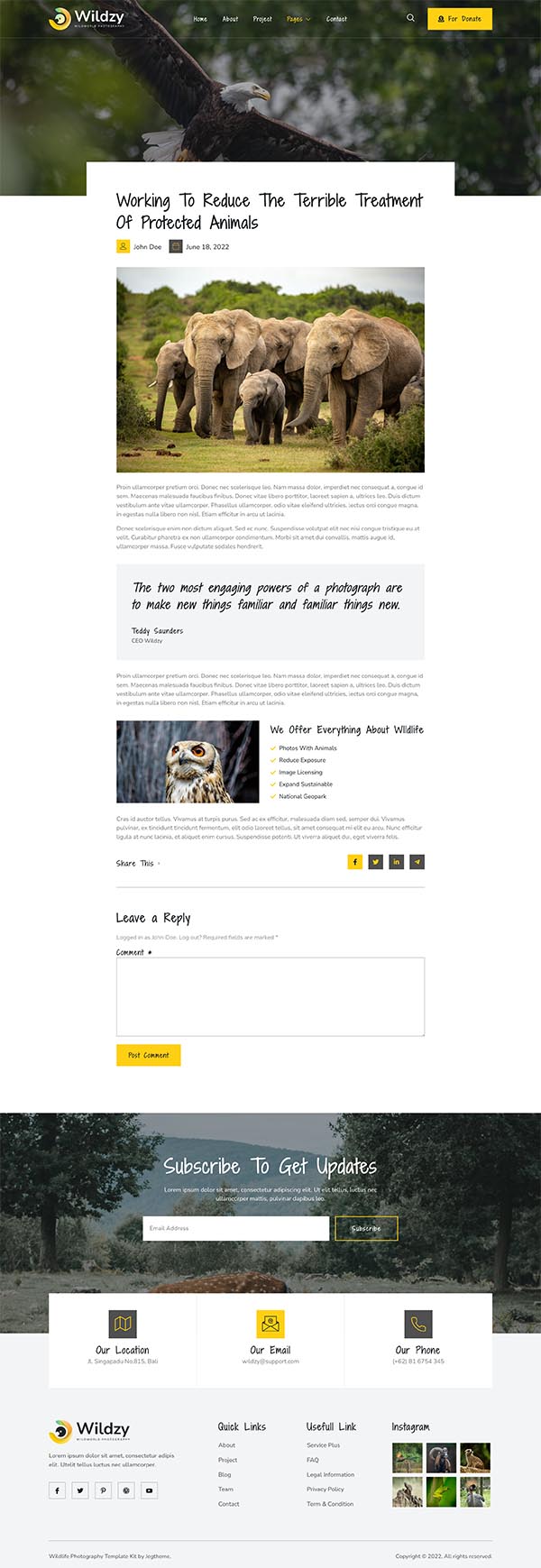 Wildzy – Wildlife Photography Elementor Template Kit